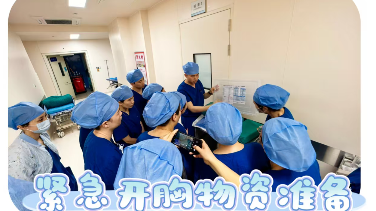 本次演练考核紧扣临床实战需求,以术中紧急开胸真实案例为演练蓝本,聚焦案例,复盘优化、实操考核,坚决杜绝形式化演练,确保演练有实效、考核有标准、整改有方向。 实景还原术中紧急开胸全流程,完整复刻病情变化,快速研判、应急响应,多岗位快速应答,开胸物资及环节准备流程。全体参训人员现场观摩,针对流程衔接、操作细节、团队配合、风险防控等方面提出优化建议,最后总结复盘,梳理短板弱项、明确整改举措,进一步完善科室应急处置预案,提升应急响应效率。