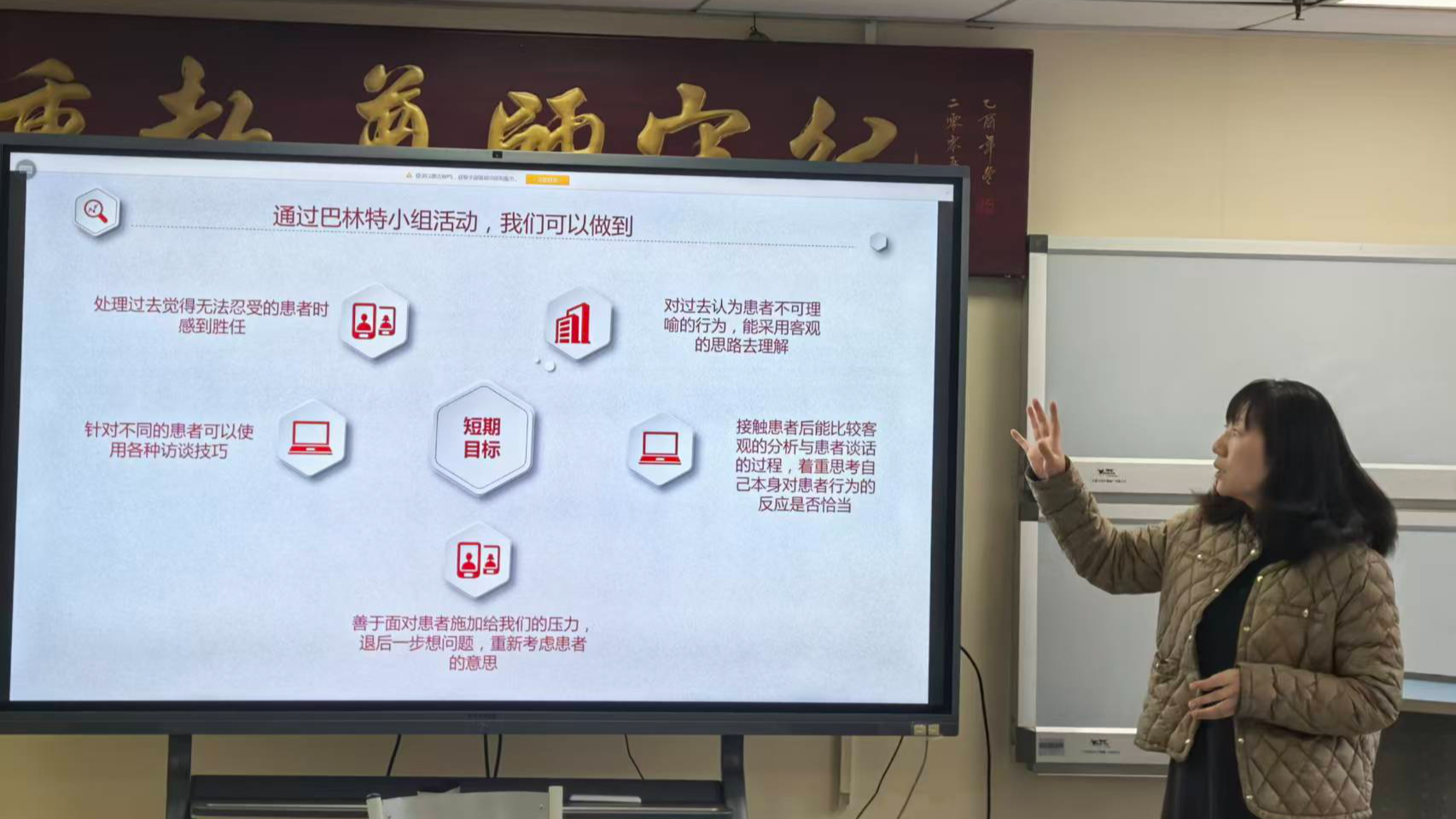 活动伊始,何英老师系统介绍了巴林特小组的起源、意义及活动规则,强调其作为一种聚焦医患关系的心理支持形式,能够有效帮助护理人员梳理临床工作中遇到的情绪困扰,提升共情能力与复杂情境应对技巧。王悠老师则通过启发式提问,鼓励进修护士积极分享实际工作中遇到的困惑与挑战——从急诊创伤患者的紧急救治配合,到术后康复阶段的沟通难题,再到高强度工作下的情绪管理,大家敞开心扉,真诚交流,现场氛围热烈。