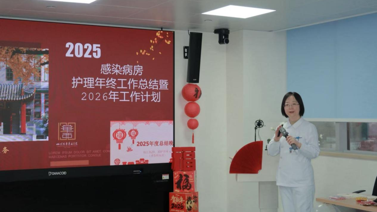 随后,李欢护士长就2025年度护理工作进行总结,她详细汇报了2025年护理团队在护理质量安全、优质护理服务、护理教学培训等方面的工作成效,面对只增不减的工作量,依然保证了临床工作质量,白班的忙碌,夜班的坚守,正是因为大家的付出,圆满完成本年度工作。同时,护理科研实现新突破,2025年,感染病房共发表SCI论文5篇,科技核心论文6篇;护理教学取得新成效,全年完成规培护士带教15人,专科护士带教22人,不断创新教学亮点,满意度全年100分。荣誉表彰捷报频传,李欢护士长获四川大学华西医院护理技能大赛护士长序列“技能之星”称号,罗婉琦等获四川省护理学会2025年感染性疾病护理年会演讲案例比赛二等奖,魏利琴获“院级综合先进个人”称号,充分展现了团队的专业素养和奉献精神。