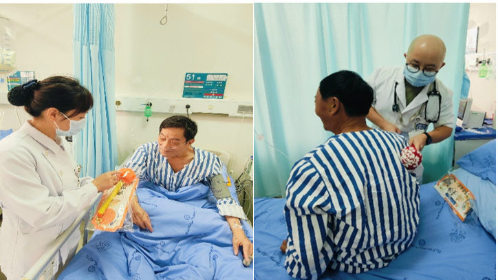 不仅是赠送礼物,医护人员更注重将健康知识传递给患者。他们现场示范,手把手地教老人们如何用艾灸锤轻轻敲打肺俞、足三里、合谷等常见保健穴位,并贴心叮嘱注意事项。“力度要轻柔,以感觉舒适为度,每天坚持几分钟,对身体大有裨益。”。病房欢声笑语不断,许多老人在医护人员的指导下,饶有兴致地互相尝试,交流感受。这份“看得见、摸得着、用得上”的关怀,让传统的重阳节充满了浓浓的暖意。