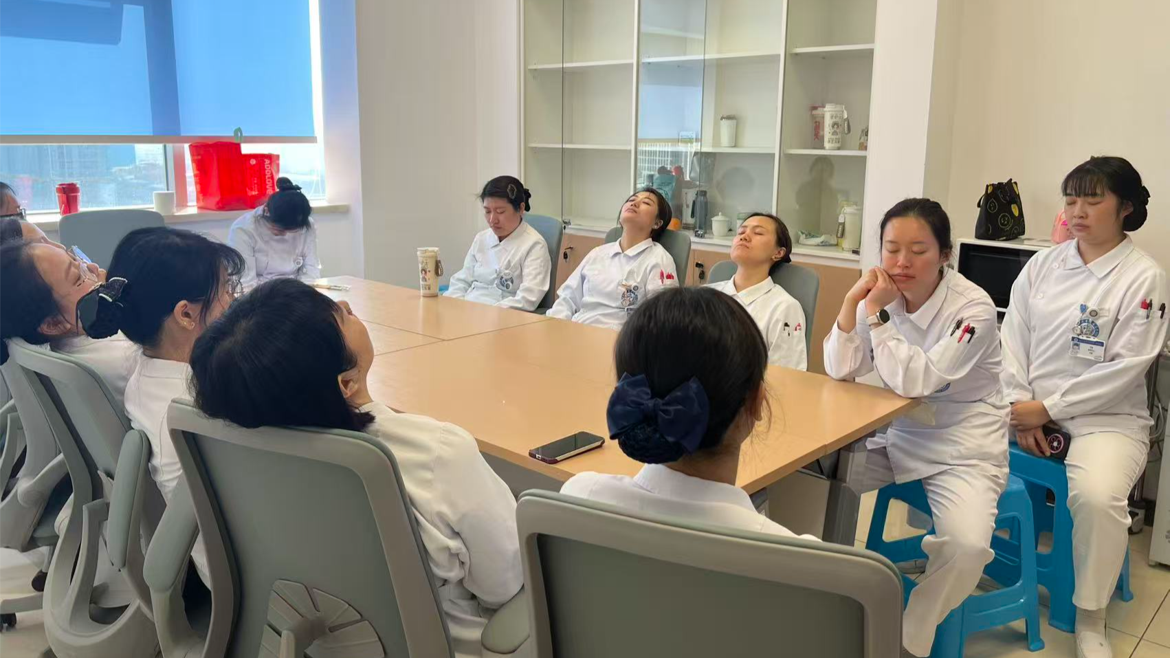 分享结束后,APN护士张蓉带领大家开展正念放松音乐治疗课程,在舒缓的旋律中引导大家专注身心、放松冥想,有效缓解了胃癌中心护士日常工作的疲惫与焦虑。