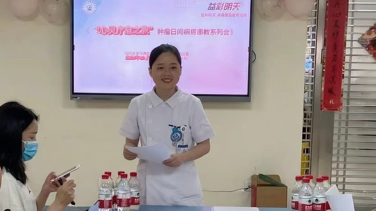 活动中,病房护士长陈华英详细介绍了我科依托“华西肿瘤日间病房”微信公众号开展的线上干预内容。该平台涵盖情绪管理、自我照护、家庭支持、重返职场等八大主题,共28期图文与视频课程,帮助患者实现“院内院外无缝衔接”的延续性护理,确保信息获取的便捷性与系统性。