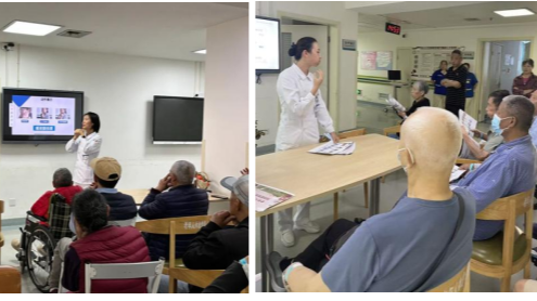 在老年患者口腔功能促进系列活动中,病房护理团队展现出高度的主动性与专业性。活动伊始,周倩云护师开展专题讲座,聚焦老年群体常见的口腔问题,系统讲解口腔健康核心知识、科学刷牙方法,并纠正常见认知误区,帮助老人们建立起科学的口腔保健观念。随后,王锐莉护师每周带领老人们进行“口腔功能锻炼操”教学。该套锻炼操涵盖口腔运动热身、舌功能锻炼、吞咽锻炼、发音锻炼、唾液腺按摩等七大模块,形成一套完整的口腔功能促进方案。她通过细致演示与手把手指导,确保每位老人都能掌握动作要领。这种寓教于乐的互动方式,不仅调动了老人们的参与热情,也增强了他们自主进行口腔健康管理的意识与能力。