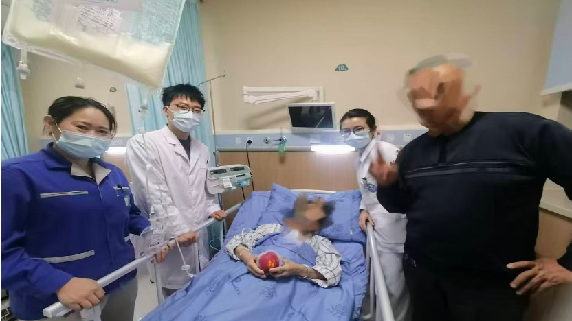守岁的仪式感,也藏在科室精心准备的新春慰问中。晚会间隙,护理团队推着满载祝福的小车,开始暖心派送。一个个红彤彤的苹果被送到患者手中,“平平安安,万事如意”,每一声祝福都饱含着医护人员对患者康复的殷切期盼。与此同时,科室也为家属送上了贴心慰问与新春问候,感谢他们在治疗过程中的陪伴与付出,让他们在寒冬中的病房里同样感受到节日的温暖与关怀。