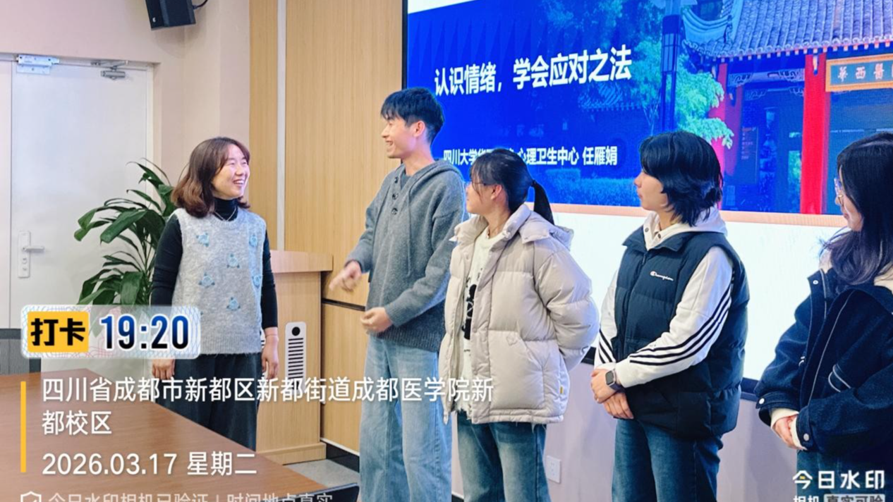 为进一步普及心理健康知识,提升护生情绪识别与心理调适能力。3月17日,心身障碍护理团队以南丁格尔志愿者身份走进成都医学院护理学院,为学生们开展了一场内容充实、形式生动的情绪应对与心理健康科普活动,帮助同学们进一步提升情绪识别能力和心理调适能力。 活动伊始,团队通过情绪识别小游戏引导学生在互动中感知情绪、表达情绪、认识情绪。轻松活跃的氛围不仅调动了同学们的参与热情,也让大家更加直观地认识到,情绪并非模糊抽象的感受,而是可以被觉察、被理解、被调节的重要心理信号。活动现场,同学们积极参与、踊跃分享,在交流中增进了对自我情绪状态的理解。