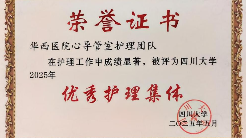 经过一系列改进措施,每个手术间每天节约近3小时,相当于多完成5.6台冠脉造影术。每月平均手术取消台次从83台降至21台,患者满意度从96.9%提升至99.1%,医护满意度也从97.8%升至99.3%。这一改善行动不仅优化了手术流程,提高了手术间的利用率,也降低了运营成本,提升了患者的就医体验。正是一份份卓越的贡献,心导管室护理团队实至名归地被评为四川大学2025年优秀护理集体。