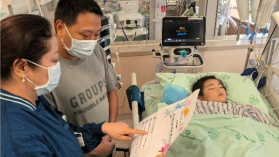 “安心守护”床旁课堂是“‘静’心守护,‘童’筑生命线”世界患者安全日系列活动中最具实践性和突破性的环节,邀请通过初步考核的家属走进病房,在静疗团队的专业指导下,亲身参与并学习患儿PICC导管的日常维护。该环节打破了ICU传统的家属探视模式,开创了家庭参与式护理在静疗安全领域的新实践,为家属提供一个在医护人员全程监督和专业指导下,亲自上手、实际操作的机会,将之前在工作坊和微信群里学到的理论知识,转化为守护自己孩子的真实技能,极大缓解了家属知易行难的焦虑,真正实现从被动接受到主动守护的角色转变。