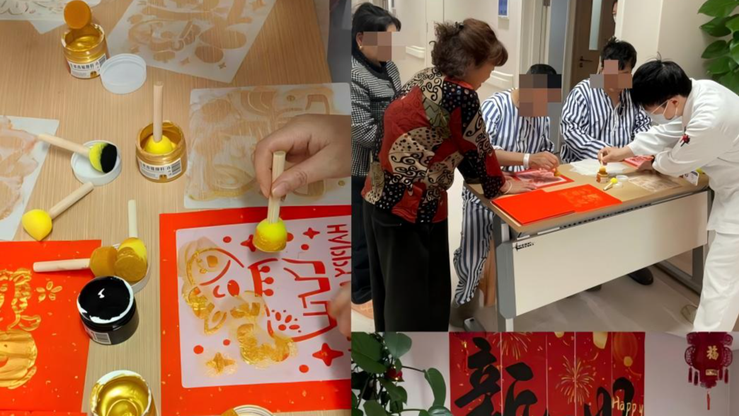我们也邀请上班工作人员,医生,护士,陪护,工人,保洁参与活动,选取精美图案,大家蘸取颜料、轻压模板、揭纸成型,关心上班工作人员,大家手持自己的作品合影留念,用镜头记录下的温瞬间。此次拓福活动,将传统年俗、人文关怀与康复护理融为一体,既丰富了住院患者的节日生活,缓解了就医焦虑,也进一步拉近了医患距离。新的一年,神经内科将继续秉持“以患者为中心”的服务理念,把暖心服务与优质护理落到实处,用专业守护健康,用温情陪伴康复,为患者带来更有温度的医疗体验。
