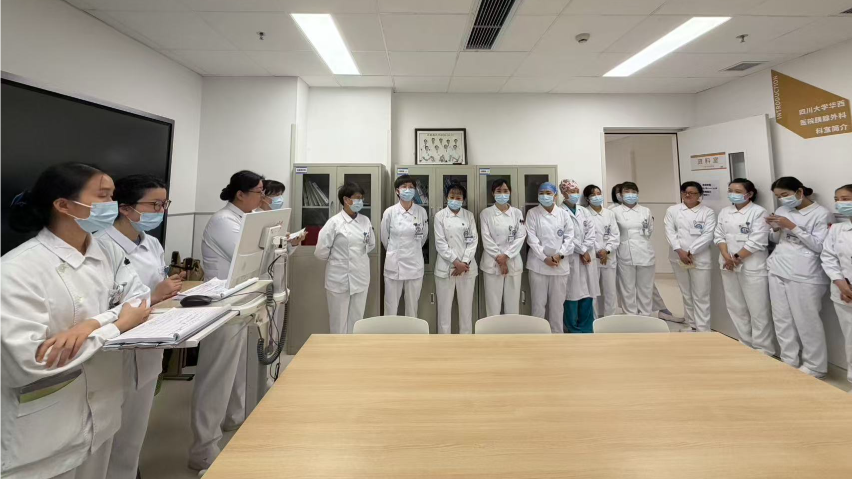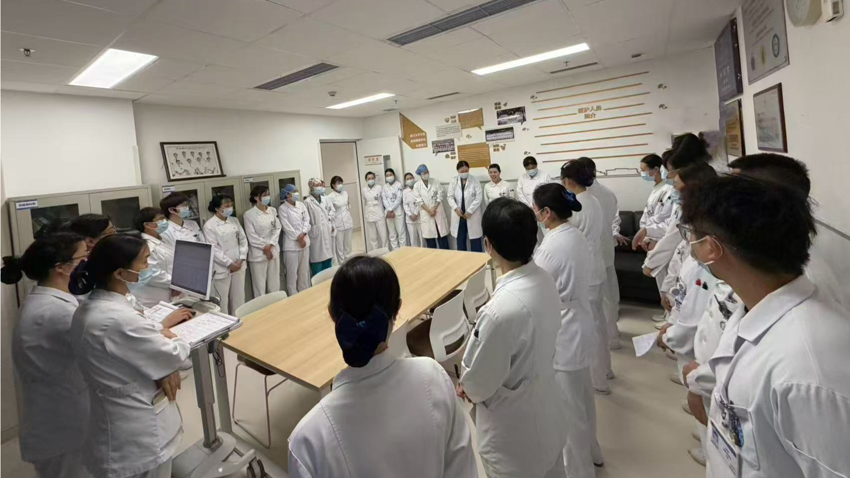为持续深化优质护理服务内涵,筑牢患者安全防线,提升各科室护理团队的专业素养与协同效能,16病区近期组织开展了科室间交叉互访学习活动。此次学习于胰腺外科进行,通过一场高质量护理交班现场观摩会,加强了科室间的交流互鉴。 观摩会聚焦规范交班流程、祥实内容呈现与积极互动点评,生动展现了落实核心制度、强化风险管理、促进护士成长方面的扎实工作与创新探索。本次学习活动为各科室提供了近距离交流、相互启发、共同进步的实践平台,有助于推动各科室护理工作的整体提升与制度实践的标准化。